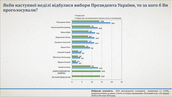 Фонд совместно с исследовательской группой Института маркетинга и консалтинга как бы провел замер общественного мнения накануне президентских и парламентских выборов 2019 года и установил: лидером парламентской гонки по-прежнему остается Тимошенко (Т), за которую готовы отдать свои голоса 18,1% определившихся со своим выбором респондентов (12,8% от общего числа), а вот на втором месте – уже действующий президент (П) с 15,1% (10,4% от общего числа). Вот что, как говорится, томос животворящий (даже копия его) делает!