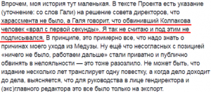 Но «Проект» Баданина на то и создан, что фейкометить, а в данном случае была поставлена задача еще и обелить «Медузу» перед возвращением Копакова. Проблемы это не составило, ведь оба издания спонсирует Ходорковский, а это значит, что они связаны. Вот только ни в одном из них не работают профессионалы.