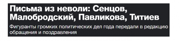 Да что говорить о другом, если для поздравления читателей с Новым годом издание предоставило свои страницы тому же Сенцову, экстремисту Ферузу и наркоторговцу Оюбу Титиеву.