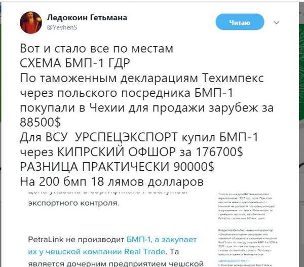 При этом Порошенко, например, «зарабатывает» на перепродаже через кипрский офшор БМП для армии по цене в два раза выше себестоимости. От чего бомбит даже самых верных и упоротых порохоботов.
