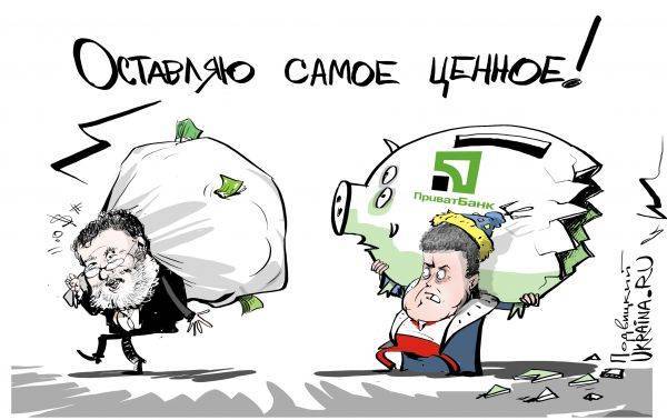 Напомню – такой «кидок» (вывод банковских активов в свои фирмы/офшоры путем выдачи им необеспеченных банковских кредитов, «рисование» в цифровом мире банковского сервера и в бумажных архивах банка фиктивных депозитов, «внесенных» бениными структурами, дабы после «национализации» госбюджет по ним заплатил «нужным людям») был бы невозможен без участия «гаранта Конституции» Украины - это и были «отступные» подельнику Вальцмана по Еврейскому майдану, это была плата нового главного рейдера Украины старому. Естественно, не из своего, а из народного кармана.