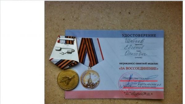 Он очень плотно поработал над собственным имиджем. Использовал фальшивые документы и ордена. Например, в 2014 году Шабаев приобрел медаль «За воссоединение», которую выдает МО РФ «За возвращение Крыма». Известно, что он пытался её продать за 70 тысяч рублей. А в интернете, вероятно, «атаман» приобрел её за 1200 рублей.