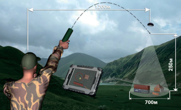Ракетница для запуска аппарата весит 400 грамм, ее длина – около 30 сантиметров. Как уже указывалось выше, изображение передается на планшет военнослужащего в режиме реального времени. Камера на максимальной высоте способна охватить участок местности площадью около 0,5 квадратного километра.