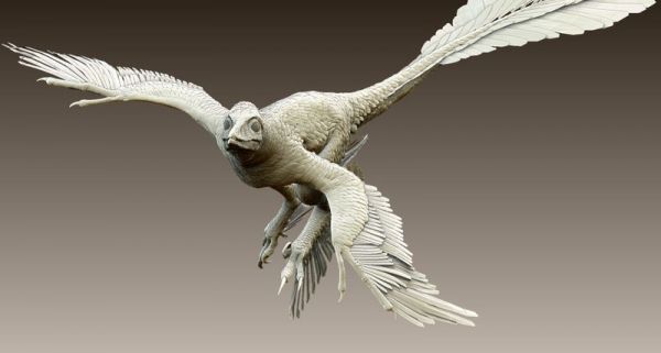 Эта рептилия, размером примерно с нынешнюю ворону, при жизни являла довольно любопытное зрелище. Все ее четыре конечности были покрыты перьями, напоминающими маховые перья сегодняшних птиц. Едва ли на них можно было полноценно летать, но планировать между деревьями — вполне.