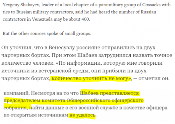 Итак, как пишет Reuters со ссылкой на общедоступные данные по отслеживанию рейсов, за последние недели в Венесуэле приземлились несколько самолетов российского правительства. Но сам же Reuters доказательств того, что они связаны с «российскими наемниками», не приводит.