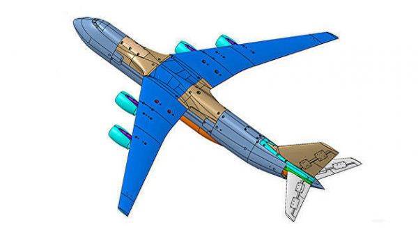 «Спроектированная модель самолета состоит из фюзеляжа, крыла, мотогондол, вертикального и горизонтального оперения, обтекателя шасси. Ее отличительная особенность заключается в центральной секции фюзеляжа, выполняющей функцию силового сердечника. На этот главный узел крепятся остальные элементы конструкции. Такое решение сократит количество изготавливаемых деталей и упростит технологию сборки», — описывали в пресс-службе модель.