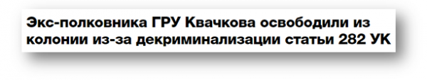 Многие российские либеральные издания уже давно превратились в информационную свалку и не стесняются использовать кликбейт-заголовки, ловить хайп и очернять отдельных людей. К числу таких СМИ можно справедливо отнести «Новую газету», выпустившую на днях материал, в котором говорится об освобождении из колонии экс-полковника ГРУ Владимира Квачкова.