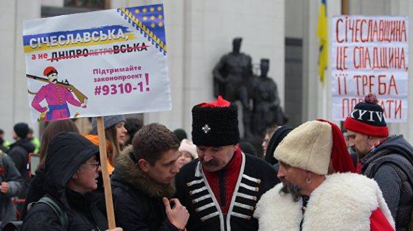 С Днепропетровском и вовсе нехорошо получилось — вообще, местные название не очень-то любили и в быту использовали сокращённое «Днепр». Но когда невесть кто на название покусился, оказалось, что 90,5% — против переименования (данные более чем авторитетного КМИСа). Но если в самом Днепропетровске было хоть немного сторонников переименования города (название "Сичеслав" использовалось в диаспоре и среди национально озабоченной общественности), то в поддержку переименования области выступила группа ряженых "казаков".