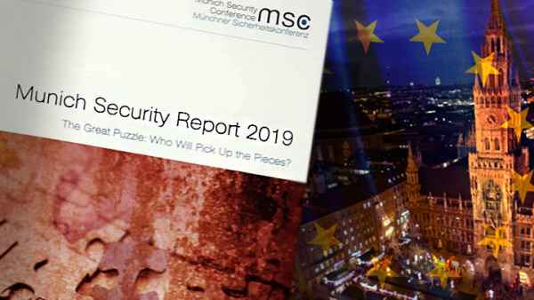 Как отметил во вступительном слове к докладу «Большой пазл: кто подберёт части?» Ишингер, мир становится свидетелем «перетасовки основных элементов международного порядка». По его мнению, «начинается новая эра соперничества великих держав между Соединенными Штатами, Китаем и Россией, сопровождающаяся определенным вакуумом лидерства в том, что принято называть либеральным международным порядком».