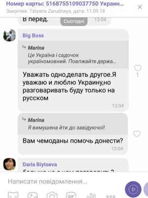 После чего украиноязычная женщина заявила о циничной травле и давлении. Ее изумление можно понять: ведь обычно в Киеве языковые инспектора типа писательниы Ларисы Ницой преследуют граждан, говорящих на «языке агрессора». Однако, в данном случае, все случилось с точностью до наоборот. О чем в своем фейсбуке сообщила пострадавшая Марина Овсиенко. Женщина утверждает, что ее дочь учится в детском саду, где большинство родителей общается исключительно на русском языке. Из-за неприязни , ее дочь заставили в детском саду в спектакле играть лягушку. Мать посчитав, что из-за этого ее ребенка в дальнейшем могут обижать, а потому отказалась от этой роли. «Моей дочке на празднике весны отвели роль жабы. Я не люблю земноводных - это мое право и отказалась от этой роли. Это тоже мое право. После чего, мамочки начали мне писать, что моя нелюбовь к лягушкам и змеям унижает детей. Я в ответ сказала, что их нелюбовь к украинскому языку унижает мою семью»,- рассказала «жертва травли» историю конфликта. После этого переписка зашла в горячую стадию. «Это украинский детский сад. Это Украина, а я и мой ребенок чувствуют себя так, будто живем в далекой Московии!»,- возмутилась сторонница украинизации. В ответ родители посоветовали ей ехать обратно во Львов и предложили донести чемоданы до вокзала. После таких «репрессий» шокированная сторонница насильственной украинизации обратилась за добрым советом к патриотам в соцсетях, жалуясь на наглость и преследования со стороны носителей «мовы оккупанта». Явно, следующим шагом станет донос патриотки в СБУ и визит С-14 в детский садик с целью проведения уроков по патриотическому воспитанию сидящих на горшках украинцев.