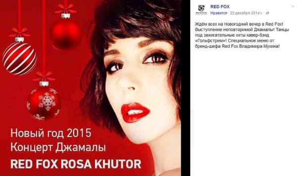 Зачем эта ложь, если уже после возвращения Крыма в Россию она с удовольствием «отжигала» на новогоднем корпоративе российских чиновников и бизнесменов в Сочи? Веселые новогодние снимки выложил в сеть ресторан Red Fox сочинского горнолыжного курорта Роза Хутор. Тем более, было предельно понятно, что на концерт в бахчисарайской Сирени-Сюйрени «зеленые человечки» идти не собрались. Зато увидеть и услышать землячку на Мемориале жертвам депортации надеялись тысячи татарских почитателей.
