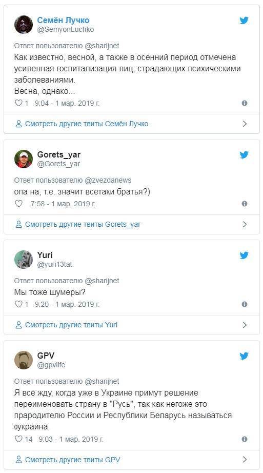 А некоторые пользователи задались вопросом, с чего вдруг глава украинского МИД принялся рассуждать о том, кто от кого произошёл. Может, весеннее обострение, а может, решил-таки братство народов признать?