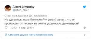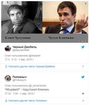 Нашлись и те, кто почему-то не согласился с украинской версией возникновения мира. Они сравнили Павла Климкина с Климом Чугункиным, от которого произошёл Полиграф Шариков в романе «Собачье сердце».