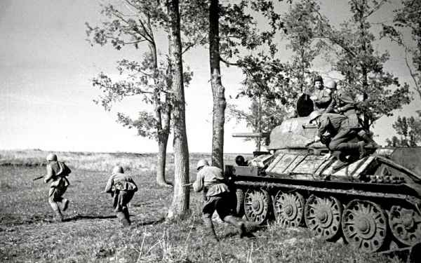 Танковый десант тренируется взаимодействовать с Т-34, 1943 год. Источник: deutsch.rt.com