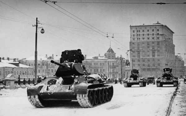 Т-34 въезжают в Харьков, 1943 год. Источник: waralbum.ru