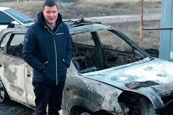 Один из мужчин сфотографировал номерные знаки машины Якова Днепровского, а через несколько часов легковушку кто-то сжег в его собственном дворе (на фото).