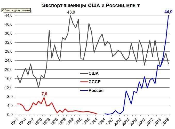 Экспорт пшеницы из России по итогам 2018 г. составил 44 млн т (43966 тыс. т, по текущим данным ФТС России). Этот показатель стал новым мировым рекордом по экспорту за календарный год. Прежнее достижение, датированное далёким 1981 г., принадлежало США — 43,9 млн т.