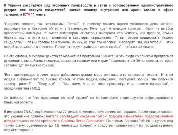Ну подумаешь, какая-то неправительственная организация "Гражданская сеть "Опора" выпустила отчет, где черным по белому рассказала, что действующий президент Украины и его подчиненные используют должностные возможности для освещения предвыборной программы Петра Порошенко...представители организации зафиксировали случаи общественного обсуждения планов перспективного развития для предвыборной агитации в пользу Порошенко.