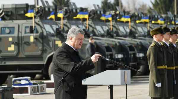 "Передал нашим военным более 400 единиц вооружения и военной техники, в том числе впервые – беспилотные комплексы оперативно-тактического уровня Bayraktar TB2", – похвалился Порошенко в своем Facebook.