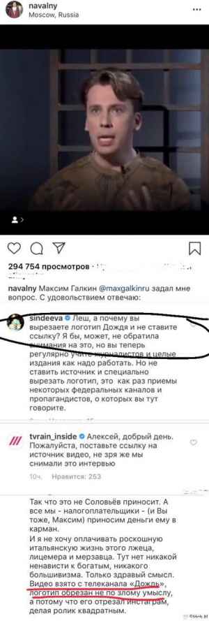 По каким-то причинам из видео был вырезан логотип «Дождя». Предположительно, что позднее Навальный отредактировал сообщение и написал, что в представленном им материале используются данные либерального СМИ.