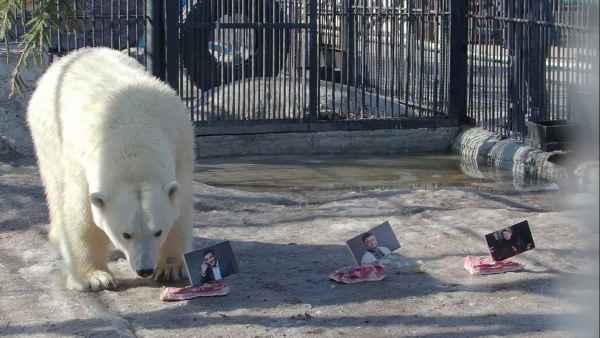 Белой медведице Авроре в этом году исполнилось 9 лет, что по человеческим меркам соответствует возрасту, позволяющему голосовать. Ей для голосования предложили излюбленное лакомство полярных хищников — украинское сало с аппетитной мясной прослойкой, тоже украсив его портретами тех же кандидатов. Аврора в недоумении обошла каждого кандидата, обнюхала и пошла прочь. Но пока наблюдатели строили всевозможные предположения, Аврора вернулась и выбрала сало с портретом Владимира Зеленского.