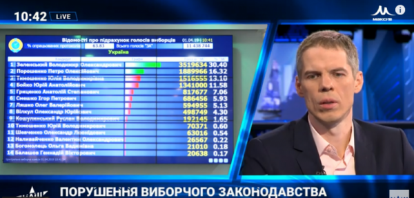 Напомним, ЦИК Украины подсчитал более 70% бюллетеней. Разрыв между Зеленским и Порошенко увеличивается: 30,45% избирателей проголосовали за руководителя студии "Квартал 95" Владимира Зеленского, 16,19% - за президента Петра Порошенко.
