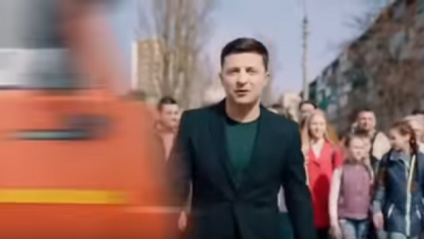 Вечером 10 апреля на Telegram-канале, связанном с президентом Петром Порошенко, появилось видео, на котором фура сбивает кандидата в президенты шоумена Владимира Зеленского. Видео смонтировано на рекламном ролике, вышедшем утром 10 апреля, на котором Зеленский призывает избирателей придти 21 апреля на участки и сказать «Нет» старой элите.