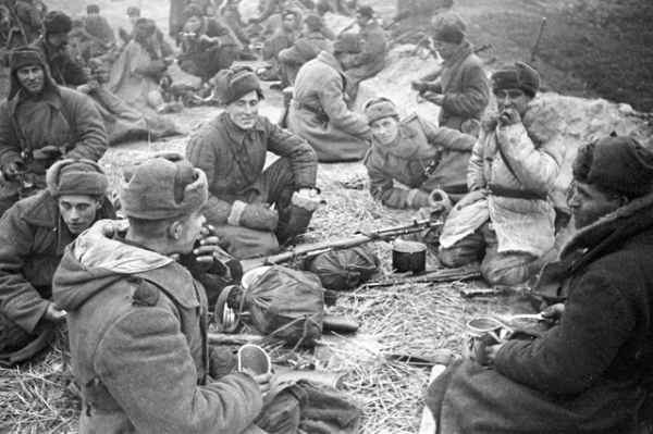 Британский историк Энтони Бивор, описывая способы снятия постбоевого стресса у солдат РККА в Великой Отечественной войне, приводит историю про знаменитые «наркомовские 100 грамм» – определённое количество алкоголя (чаще водки), которое ежедневно выдавали участникам боевых действий. Бивор пишет, что порой этой дозы не хватало, чтобы снять напряжение, и бойцы искали возможности достать добавки – пили технический спирт и антифриз, меняли на самогон у местного населения своё обмундирование.