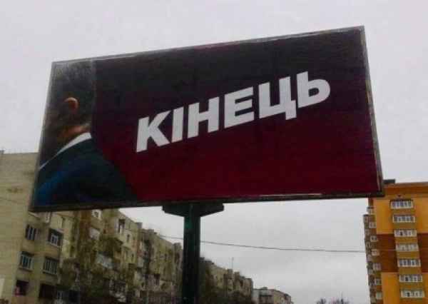 За пять дней до второго тура выборов вся Украина оказалась завешана бордами, которые пророчат действующему президенту бесславное окончание каденции. Как раз в тот день, когда лидер нации дебатировал сам с собой на НСК «Олимпийский», в Киеве, Одессе, Харькове, Днепре, Черкассах появились рекламные щиты в стилистике президента Петра Порошенко с надписью «Конец».