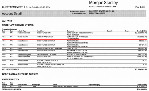 Финансовый отчет фирмы Байдена-младшего о поступлении денежных средств со счета украинского холдинга Burisma