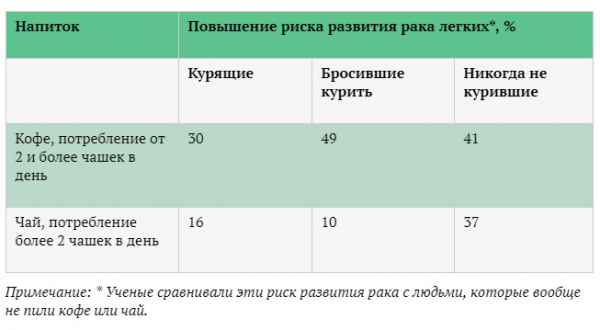 Таблица. Как кофе и чай влияют на риск возникновения рака легких