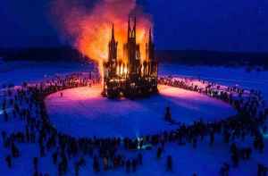 Как не вспомнить, что почти ровно год назад на Масленицу в заповеднике Никола-Ленивец был торжественно сожжен макет готического собора в натуральную величину, сплетенный художником Николаем Полисским из ивовых прутьев! Тот пожар был торжественно назван «Пламенеющей готикой» и вызвал бурю негодования в клерикальных кругах страны, так что против художника даже пытались возбудить уголовное дело. И вот оно – аукнулось, хотя казалось невинной шуткой...