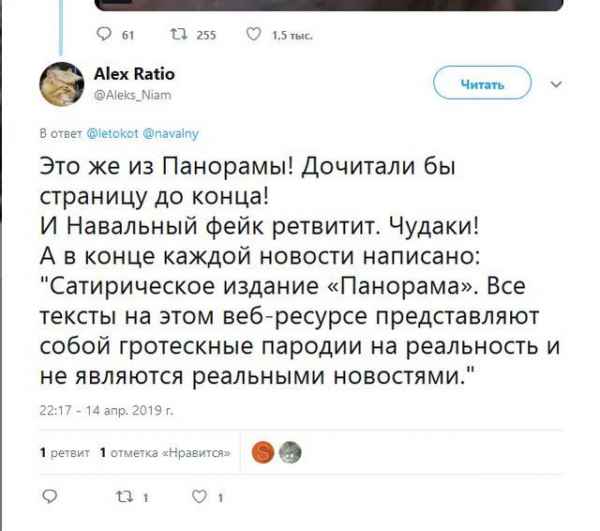 Текст из данного поста был взят с юмористического канала «Панорама», занимающегося публикацией смешных, но не настоящих новостей. Что Алексею сразу же и рассказали интернет-пользователи, однако блогер не собирается уничтожать улики своей возмутительной неразборчивости в новостных сводках. Он по-прежнему продолжает «держать на своей стене» данный фейк, выдавая наивным читателям шутку за истину.