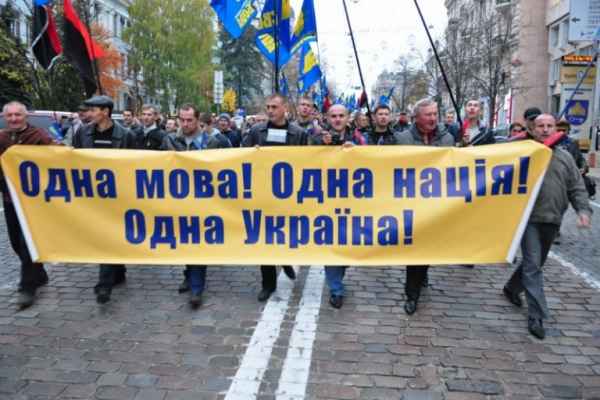 Например, принадлежащий Коломойскому телеканал «1+1» сопроводил эту новость кадрами ликующей под Верховной Радой толпы: «Наконец-то! Слава Украине!». Вот вам для сравнения. Просто представьте, что в России за каким-то чертом принимают нечто подобное об исключительности русского, а местные «лучшие люди города» вопят: «Ура! Плевать, что завтра из квартиры за долги выселят. У Васьки-то, племянника, пока еще две почки. А летом картофельные очистки на костре жарить будем. Зато мы говорим по-русски. Ура! Слава России!» (а дрессированные укры ведут себя именно так).