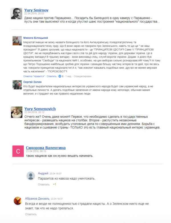 Приведу несколько комментов, отношение жителей незалежной к Билецкому и его упырям: