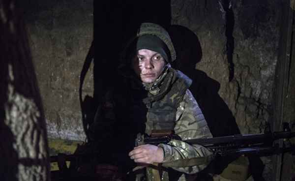 Украинский снайпер в деревне Маринка недалеко от Донецка