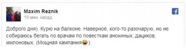 Максим Резник продолжает курить на балконе, и дым наркотиков опять попадает в чужие квартиры - в легкие детей и стариков.