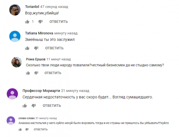 В комментариях к видео россияне отреагировали молниеносно – в Москве ты никому не нужен. Все прекрасно знают, что его капиталы – это разворованная Россия в 90-е годы.
