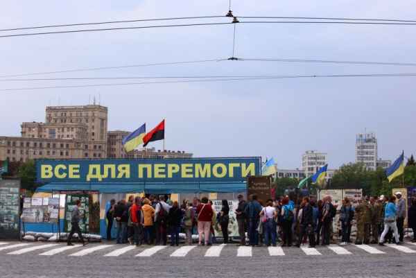 В Харькове, как и анонсировалось ранее, прошел митинг проукраинских активистов-шизофреников, выступающих против сноса палатки-бомжатника «Все для победы», установленной на главной площади города.