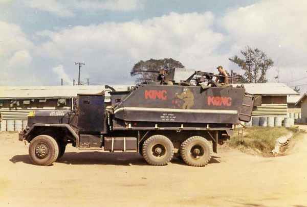 Вскоре у 8-й группы появились еще более мощные эрзац-бронемашины: пятитонные грузовики М51 получили бронекорпус, некоторые даже с разнесенным бронированием для защиты от гранатометчиков. Большая грузоподъемность позволила усилить вооружение: в придачу к М60 машины получили М2НВ или шестиствольные «Миниганы», способные изрешетить вьетнамский лес вместе с засадой в зелено-красные ошметки. В других подразделениях пошли еще дальше и установили в кузов зенитную установку М16 (представлявшую собой счетверенный пулемет М2НВ) и даже 40-мм автоматическую пушку М1, могущую вести огонь разрывными снарядами.