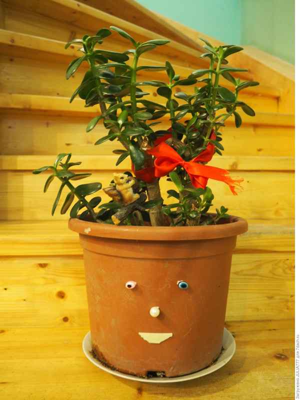 Любит толстянка монетки и красный цвет. Поэтому при пересадке закопаем несколько монеток у корней и повяжем на ствол красную ленточку или верёвочку.