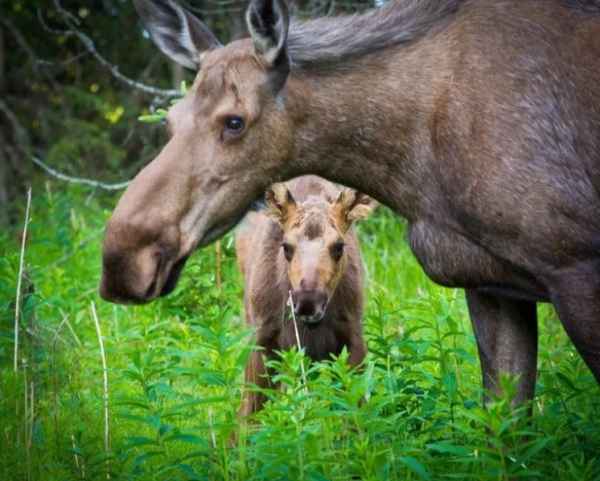 Остальное было делом техники, подхватив малыша, мы бросились в лодку, через несколько мгновений лодка тронулась. Лосиха последовала за нами, то шла быстрым шагом, то пускалась вплавь, мы не торопились, дабы она не потеряла нас из виду. Наконец высокая спасительная трава коснулась лодки..мы с Генкой выскочили и поставили лосёнка подальше от берега, едва успев до прихода лосихи.
