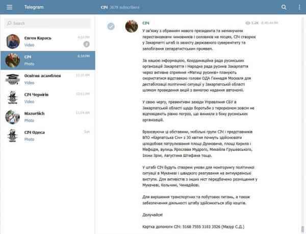 Так, после президентских выборов, прошедших недавно на Украине, товарищи из украинской националистической организации С14 решили, что пока во власти и силовых структурах будут идти кадровые пертурбации, им необходимо взять инициативу в свои руки. В итоге, в Закарпатье открылся штаб по защите государственного суверенитета и профилактике сепаратистских проявлений, а также с 30 апреля мобильные группы С14 начали круглосуточно патрулировать улицы и площади Мукачево в поисках сепаратистов.
