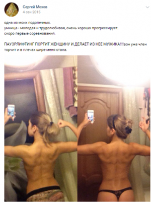 Более того, самопровозглашенный «некросоциолог» еще и занимается на дому паурлифтингом с молодыми спортивными девушками. Неизвестно, что там на самом деле происходит за закрытыми дверями, но догадаться не сложно, ведь стеснения у этой четы нет совершенно. В 2015 году Мохов похвастался подписчикам фотографией своей практически голой жены.