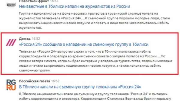 Канал «Россия-24» обнародовал видео, где явно заметно: группа журналистов, вне всяких сомнений, находилась под угрозой. Но «Дождь» вновь отличился: кричит на каждом углу, что все это – сплошная постановка. Замечено, что либеральное СМИ ранее уже подстрекало корреспондентов отправиться в Грузию, зная, что там небезопасно.