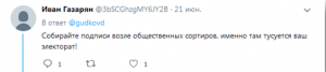 «Подвергшийся нападению» сборщик подписей не обратился ни к медикам, ни к полицейским. Он вообще запамятовал об инциденте, и вспомнил о нем спустя пять дней. Истории Гудкова настолько неправдоподобны, что над ними потешаются пользователи соцсетей.