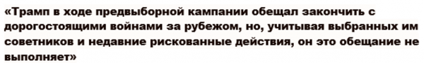 Республиканец Мэтт Гетц также напомнил Трампу, что решение о том, когда и с кем США начинают военные действия, принимает всё-таки Конгресс, а не разобидевшийся на кого-то президент.