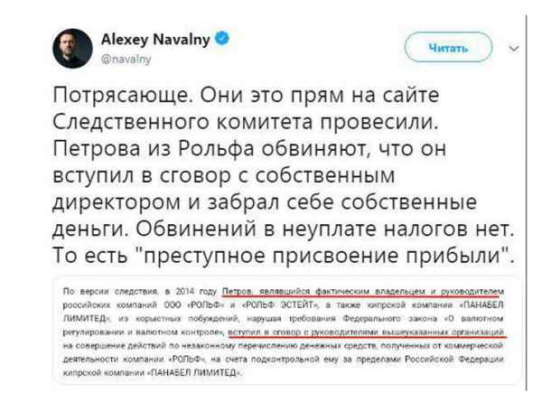 Сегодня в Twitter Алексея Навального появился пост. В нем говорится о некоем Сергее Петрове.