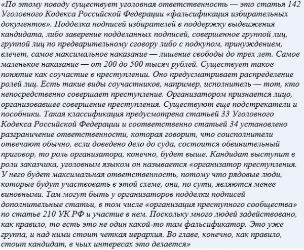 Так, совсем недавно, сотрудники полиции рассекретили целое «предприятие» по рисовке фейковых подписей в пользу кандидатуры Соболь в Пресненском районе. Трое парней, находясь в арендованном жилище, подделывали подписи жителей города, используя их персональные данные, в том числе и паспортные. Данная деятельность уже нарушает уголовное законодательство РФ.