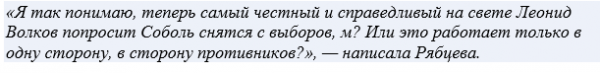 Также после выявления очередного случая мошенничества оппозиционного кандидата, журналистка Леся Рябцева и вовсе заговорила о необходимости Соболь снять свою кандидатуру: